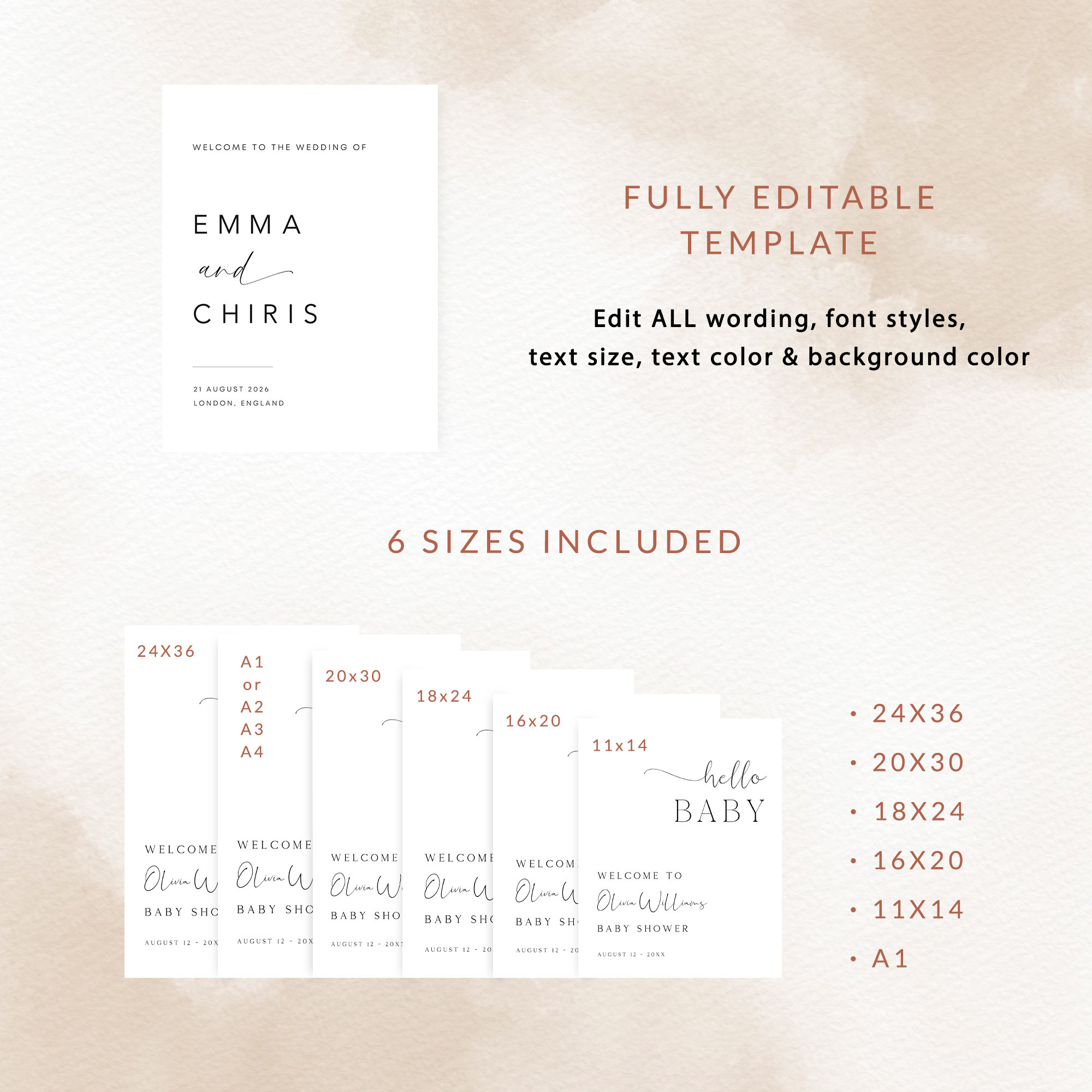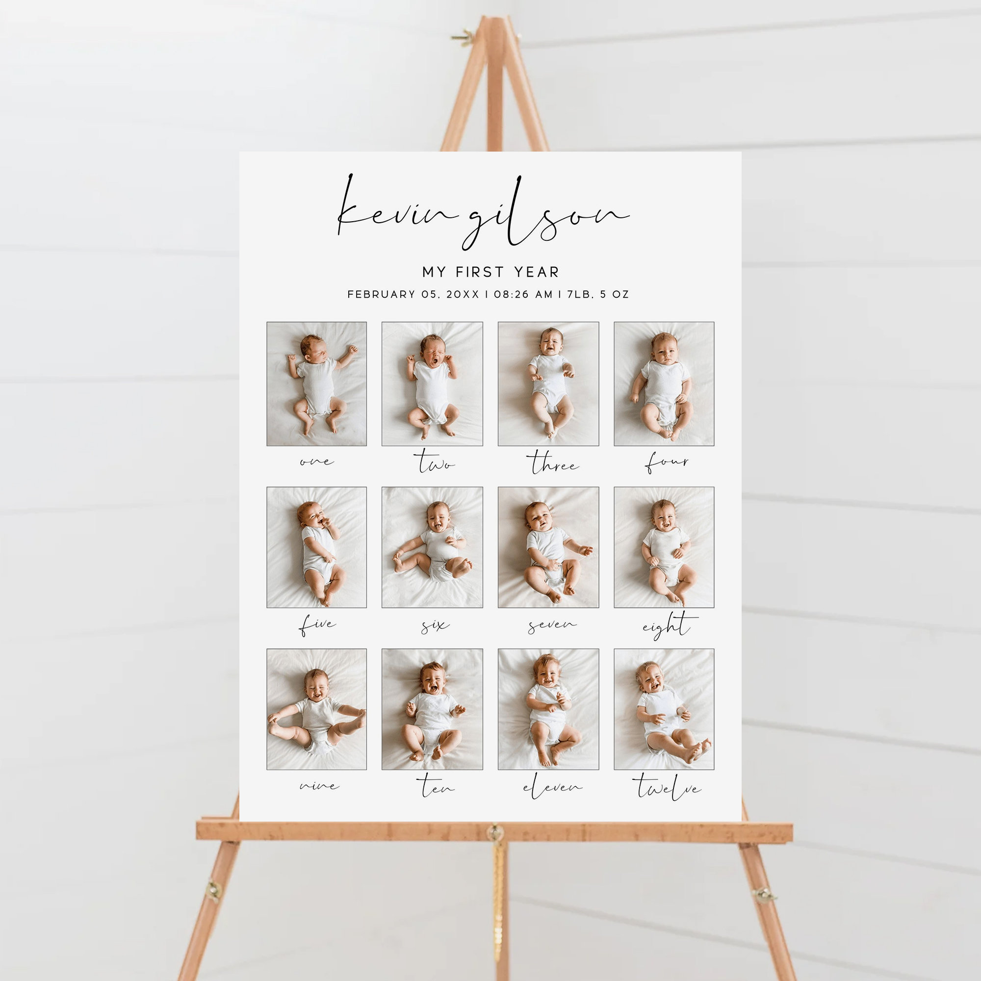 - Modern, Minimalist Design A clean layout with elegant fonts and simple icons ensures the attention stays on your baby’s milestones, making it perfect for any gender or party theme.
